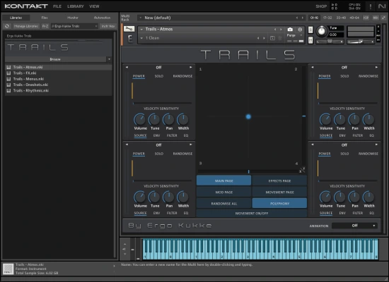 Ergo Kukke Trails 是一款非常强大和灵活的音乐工具,适合那些想要在 Kontakt 中探索新的声音领域的人。它需要完整版本的 Kontakt 5.8.1 或更高版本才能运行。