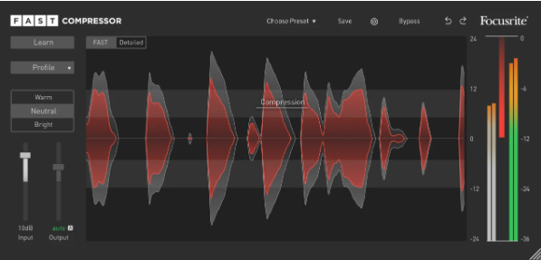 快速压缩器可以快速地充分利用您的声音。利用人工智能的力量使音频更受控制,它的设计目的是让你保持创造性,并专注于重要的事情:制作音乐。