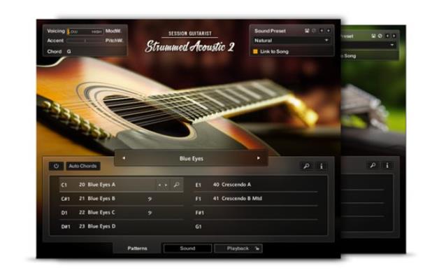 SESSION GUITARIST系列的第二版STRUMMED ACOUSTIC 2,通过两个精心挑选的复古原声吉他、丰富的pattern和和弦库以及实时性能控制,扩展您的声音调节面板。