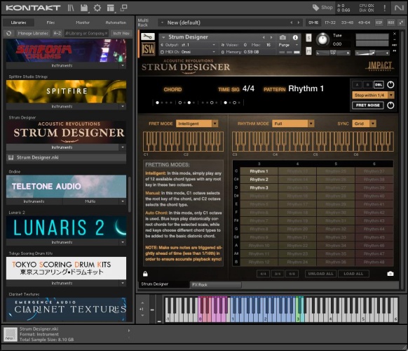 Acoustic Revolutions Strum Designer 是由Impact Soundworks公司发布的一款专业的节奏吉他音源,它不仅提供了丰富的吉他循环素材,还提供了一个创新的节奏构建工具。