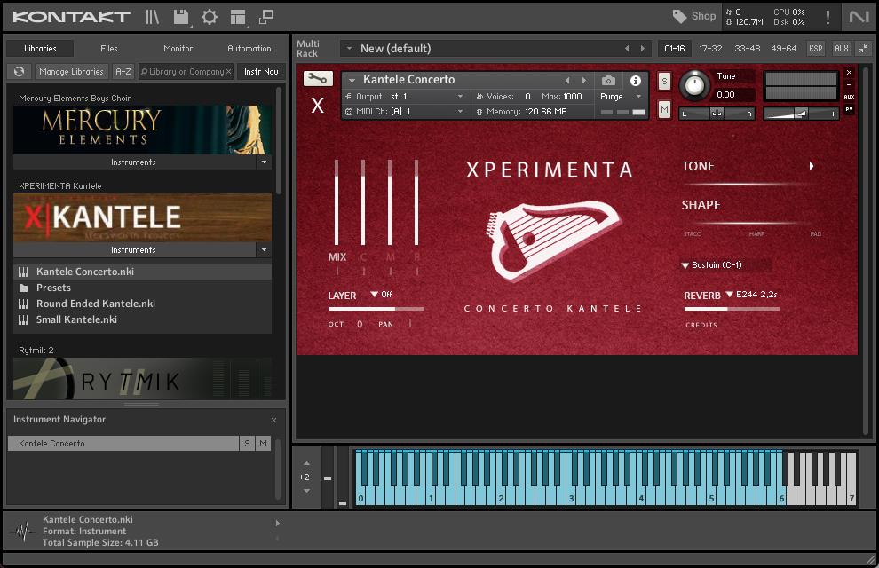 XPERIMENTA Kantele 是一个采样库,包含三种美丽的康特勒琴,这是芬兰的国家乐器。其中一种是由音乐家和艺术家 Emma Lomy 演奏的 Concerto Kantele。XPERIMENTA Kantele 是在赫尔辛基的 Sibelius Academy 音乐技术部门的一个 105 平方米的录音室录制的,只使用顶级设备。你可以使用 XPERIMENTA Kantele 制作不同风格的音乐,它有一个简单易用的图形界面,可以调整声音的各种参数。它还有一个“层”功能,可以给康特勒琴添加三种额外的乐器层:迷你合成器垫、钟琴和琵琶。它是一个 Kontakt 库,需要 Kontakt 5.5 或更高版本才能运行。