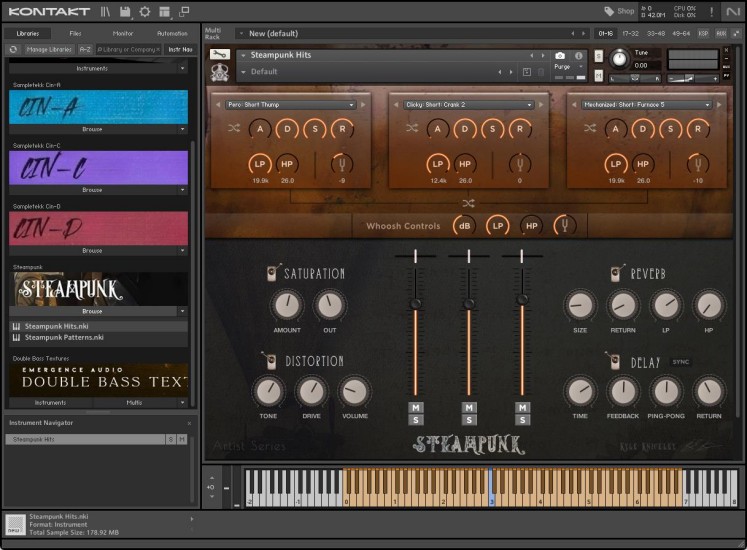 Fallout Music Group Steampunk 是一款由 Fallout Music Group 出品的音乐制作软件,它使用了 Kyle Kniceley 的声音设计,以蒸汽朋克风格为特色。它包含了两种不同的 Kontakt 乐器:PATTERNS 和 HITS。