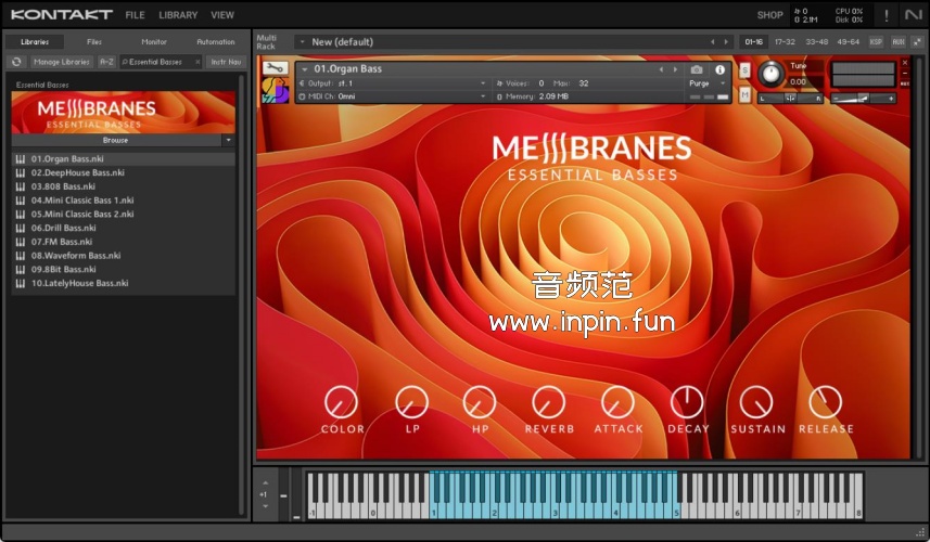 这个库需要 NI Kontakt 6.1.1 或更高版本的完整版,并提供 Wav 格式(48kHz,24bit)。下载大小为 0.18Gb,未压缩大小为 0.2Gb。