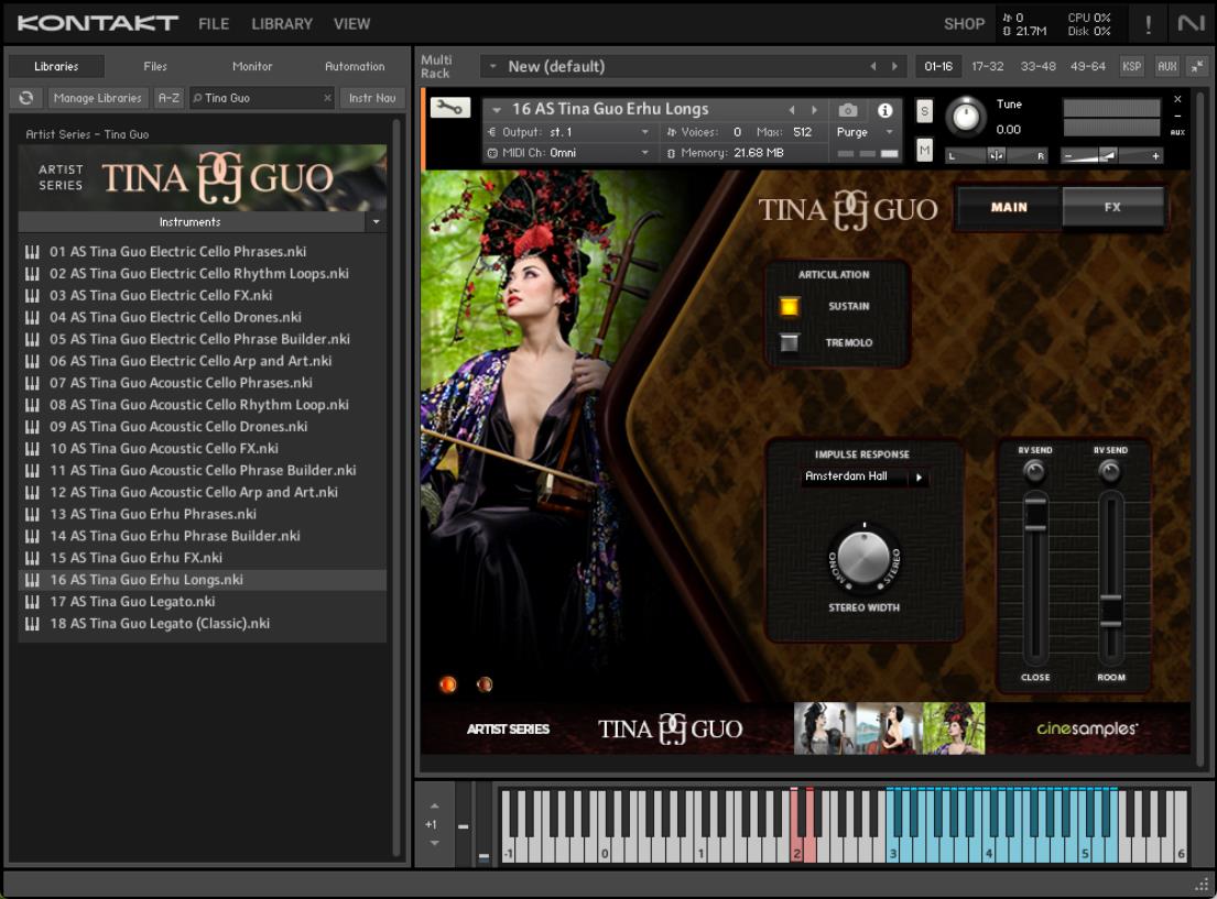 Cinesamples Artist Series Tina Guo 是一款虚拟乐器插件,它包含了著名的大提琴演奏家 Tina Guo 的声音。这款插件可以让你在你的音乐制作中使用她的独特的演奏风格和技巧,从深情的大提琴独奏到电子合成的声音设计。这款插件包含了三种乐器:大提琴、电子大提琴和二胡。