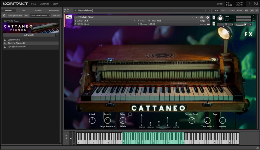 - CATTANEO Electric Piano:这是一个梦幻般的电钢琴体验,采样自Cattaneo定制改装的Rhodes类型钢琴,提供了与众不同的电钢琴声音。