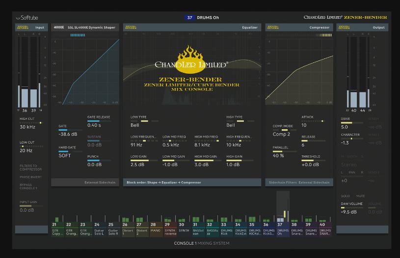 - 钱德勒限量齐纳限®幅器和曲线弯曲器母带均衡器的声音组合在一个通道条中,用于控制台 1
