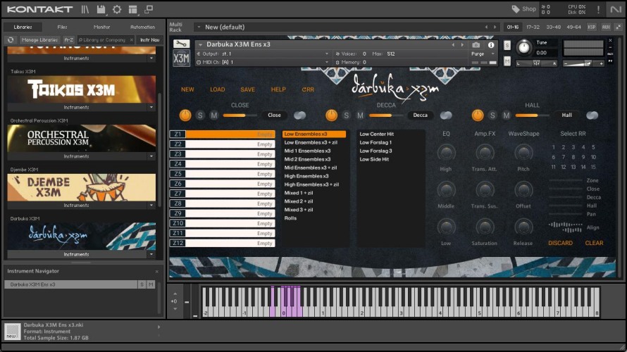Strezov Sampling Darbuka X3M 是一款专业的打击乐采样库,它提供了多种不同的Darbuka乐器,以及多人合奏的录音。它使用了X3M打击乐引擎,让你可以灵活地分配和调整不同的音色和效果。它适合用于制作电影配乐和中东风格的音乐。