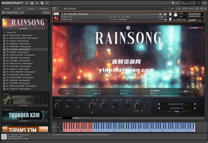 Rainsong 2 是一款适合任何类型的音乐制作和声音设计的库,它可以让你层叠定制的电子声景,进行基于水的合成,并产生创意的声音风暴。