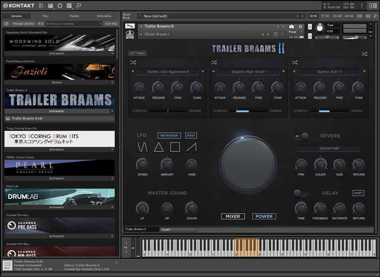 当然,随机化选项也是可用的,可以在任何时候给你一个快速的灵感提升,无论你是想要随机化所有源声音,还是只随机化一层¹。Trailer Braams II提供了一个单独的Kontakt(6.6.1+)乐器。它是我们第一个完全支持NKS的乐器,让你可以通过你的NKS兼容键盘完全控制所有的参数。