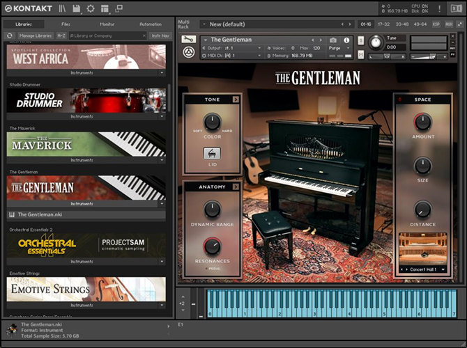 THE GENTLEMAN是基于一款1908年立式钢琴的采样乐器。 这款钢琴的原始要素被完好无损地保存下来,您可以在录音中听到世纪之交的特色。 THE GENTLEMAN声音细腻柔和、表现力强,是您需要的唯一立式钢琴。