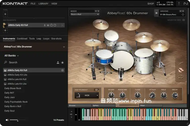 ABBEY ROAD | 60s DRUMMER是原版ABBEY ROAD | 60s DRUMS的增强版本, 为融合 KONTAKT中的改进进行了更新。 所有新的ABBEY ROAD DRUMMER乐器包含来自 STUDIO DRUMMER的增强版Mixer Section以及Groove Library 。