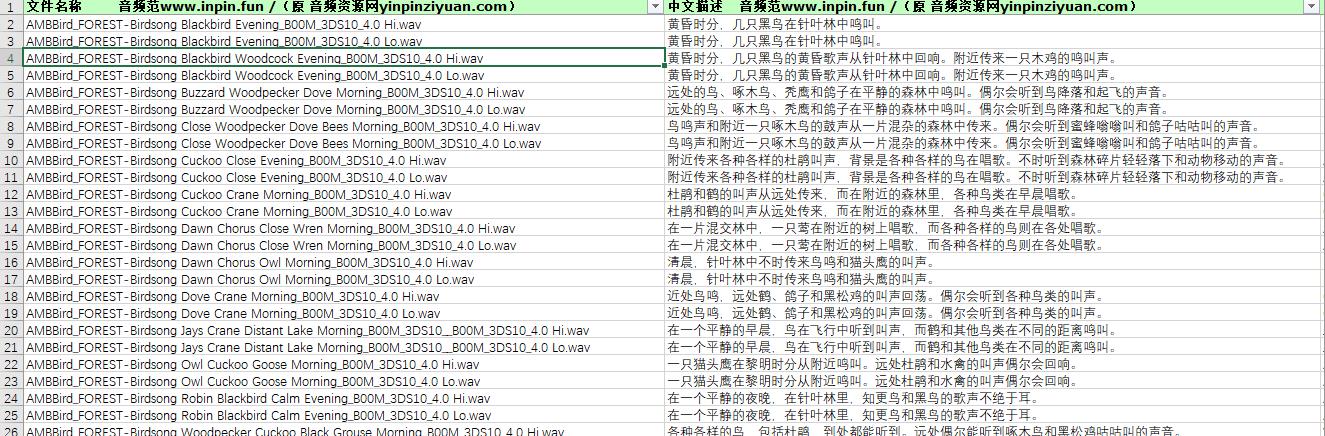 - 它涵盖了欧洲不同地区的春季声音,如爱尔兰的高地,德国的黑森林,瑞典的湿地等。你可以在此包中得到各种鸟类,青蛙,昆虫,风,雨,河流,瀑布等自然元素的声音。