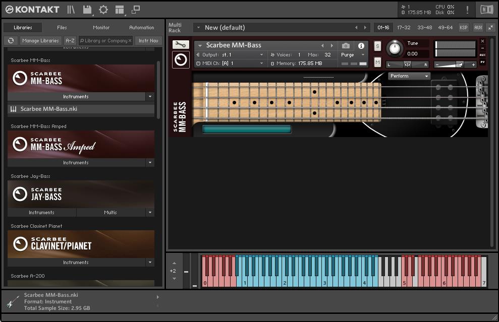 SCARBEE MM-BASS不仅仅是一个采样集合。 它具有广泛的演奏技巧,包括延音、制音、泛音、击弦、勾弦以及滑弦等。 借助一些复杂的脚本,SCARBEE MM-BASS的各种功能赋予其灵动的生命力,比如动态的指板显示、和弦识别、不同释放采样之间的随机切换、触弦样本和真实的颤音的随机插入——所有这些都为您的groove增加了魅力。