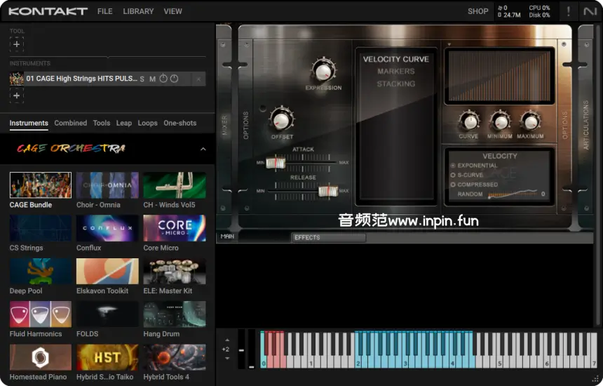 CAGE Bundle 的界面设计非常用户友好,基于 Native Instruments KONTAKT 平台。它提供了直观的操作面板,使用户能够快速选择不同的音效和技巧。音色库中的每一个细节都可以进行个性化的调节,用户可以自由设置速度、力度、动态和音调等参数。