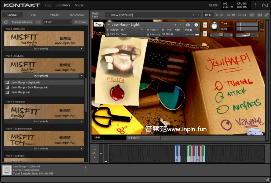 - 广泛的适用性: Misfit Jawharp 非常适合用于电影配乐、广告、游戏音效、以及各种风格的音乐创作中,如民谣、世界音乐、电子音乐等。它的独特音色能够为作品增添节奏感和民族风情。