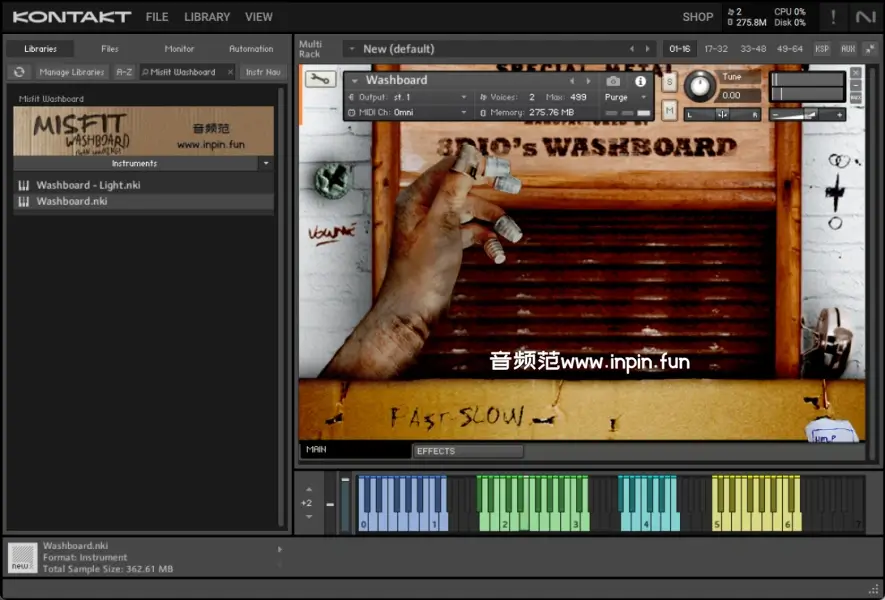 - 多样化的演奏风格: 采样库不仅包括标准的搓板演奏方式,还加入了一些创意性和实验性的声音效果,例如快速摩擦、节奏打击和多种演奏手法的结合,使声音更加丰富多样。