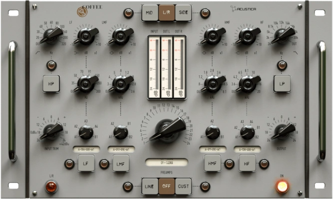 - Coffee EQ:一个模拟均衡器,包含了 4 个频段,每个频段有 5 个选择开关,可以精确地调整音频的频率响应。Coffee EQ 还有一个独特的功能,就是可以在每个频段之间切换不同的模拟设备,比如 Pultec EQ,API 550A EQ,Neve 1073 EQ 等,让您可以自由地组合不同的音色。