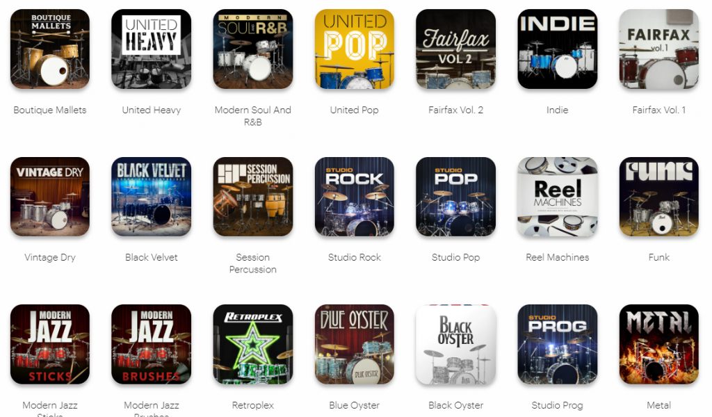 A Collection是一堆ADpaks(鼓组),MIDIpaks(节拍)和Kitpiece Paks(单鼓)组合在一起,为您提供最佳的鼓制作体验。