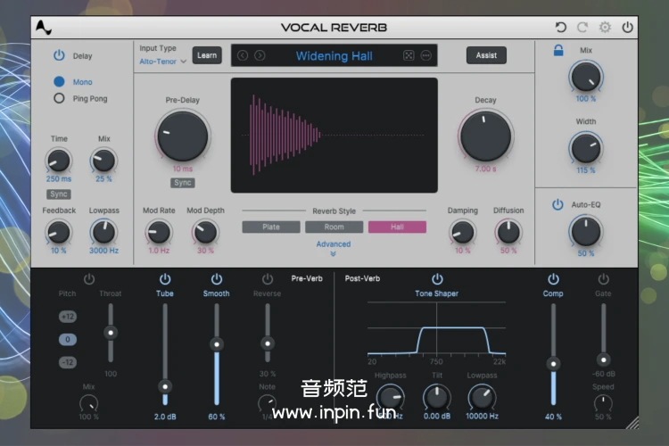 - Tone Shaper, Compressor, Gate, Width:这是五种后混响效果,可以让你在混响之后调整人声的音色,压缩,门限,和宽度。