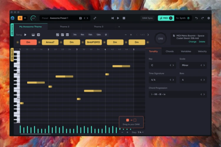 - 简单的导入导出: 通过简单的拖放操作,MIDI就可以导入到您的DAW中,轻松融入您的工作流程。