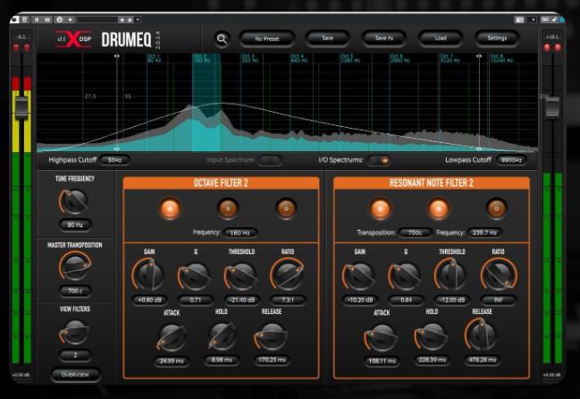 aiXdsp Drum EQ 是一款专为混音鼓声而设计的静态/动态均衡器插件,它可以根据鼓声的共振频率,自动计算出其倍频,并对每个频段进行精确的调整和控制。它可以让你快速地改善鼓声的音色和动态,让你的鼓声更自然,更有力量。它的主要特点有: