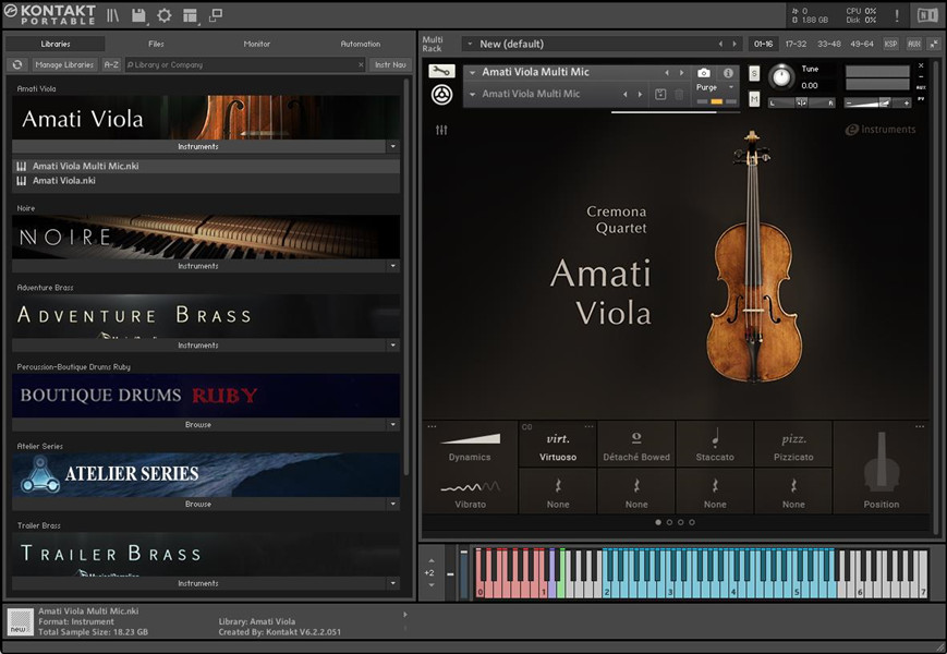 该乐器提供20种不同的专业演奏的发音,每种发音最多有五个连奏过渡。此外,创新的、性能捕获的颤音模拟了专业演奏者的自然颤音技术,立体声相位对齐动态交叉淡入淡出消除了动态过渡之间的相位。这些功能结合在一起,使AMATI VIOLA成为最逼真,最真实的中提琴独奏娱乐之一。