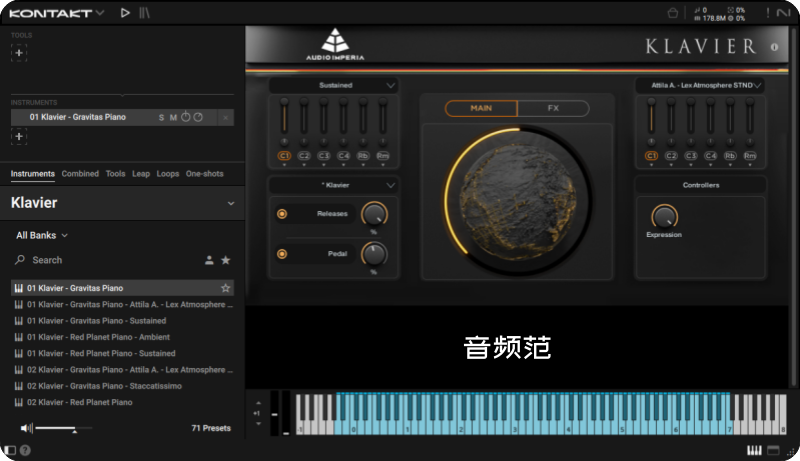 内部结合了这些有机样本与由顶级声音设计师创作的合成钢琴层,通过预设或控制参数进行混合与变形。