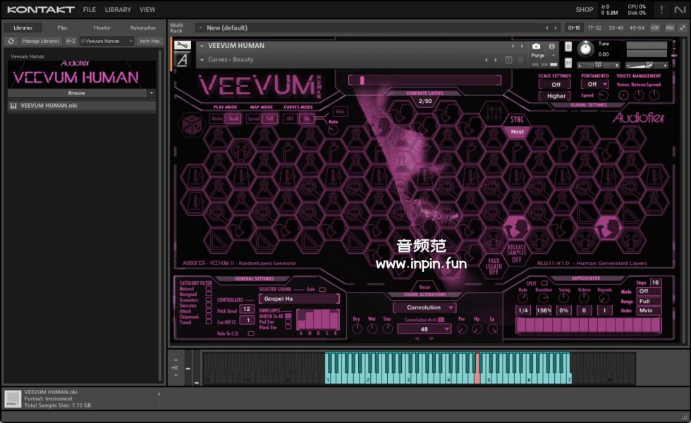 - Veevum Human 主要基于人声样本进行声音设计,这些样本经过处理和合成,以创造出现代和未来感的声音。