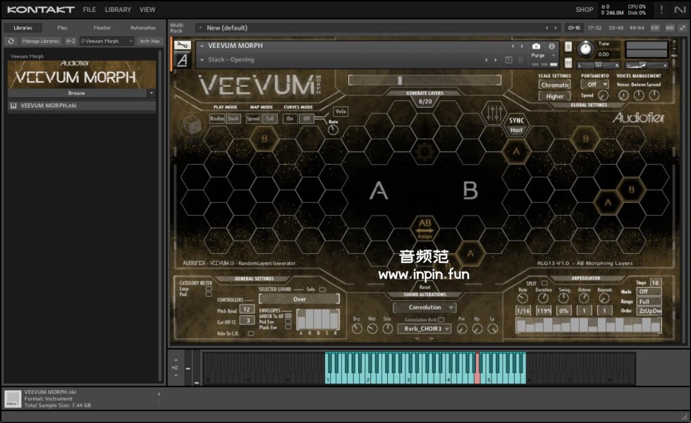 - Veevum Morph 结合了多种声音源,包括合成声、采样声和其他数字声音元素。这些声音源经过处理和变形,创造出多样化和独特的声音。