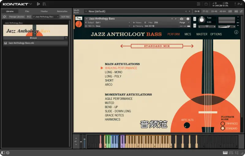 Authentic Soundware Jazz Anthology Bass 是一款面向 KONTAKT 平台 的专业虚拟低音样本库,专注于还原爵士低音的真实音色、演奏表现和演奏动态。它采样自高品质的爵士电声 / 立式低音(视具体版本而定),并通过细致的动态层次、演奏技巧采样和专用控制,使 MIDI 演奏听起来更接近真实乐手的表现,而不是机械样本。
