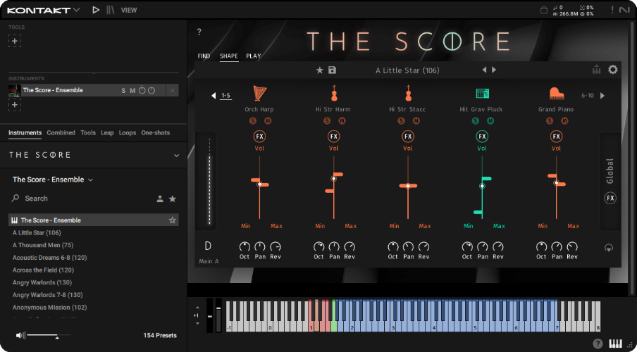 The Score 是开创性的多合一配乐工具,涵盖了广泛的流派、风格和乐器。可让您立即获得流行的声音,如电影音乐的感觉。在果酱般的作曲过程中快速愉快地创作专业乐谱。或者使用我们庞大的单一乐器集合逐个音符创作您的音乐。我们的目标是为您提供完美的助手,使作曲尽可能富有创意,没有任何限制。跳过所有技术负担,立即开始制作音乐。