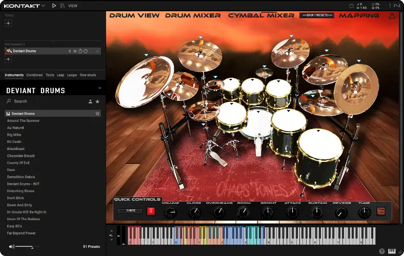 准备好被 Deviant Drums 震撼吧!这款耗时一年开发的划时代虚拟鼓组,为Kontakt精心打造,内含: