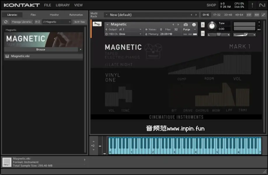 - Magnetic 的声音库基于磁带机、音频带、录音机等复古音频设备的采样。通过这些设备的模拟和数字处理,它能够产生温暖、富有颗粒感和独特质感的声音。