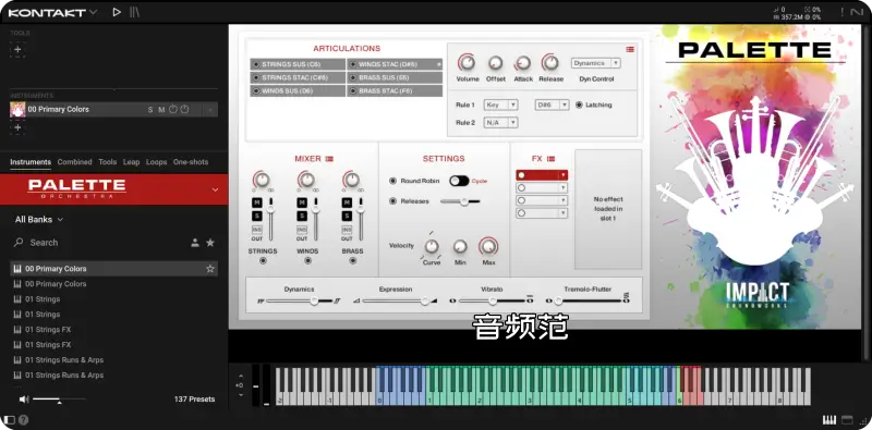 Palette Orchestra Complete 是 Impact Soundworks 整合 Red Room Audio 原系列的一站式影视管弦乐合集,主打易用性与高保真,适合快速搭建史诗、室内、剧情等多风格配乐,无需复杂编程即可出成品级效果Impact Soundworks。