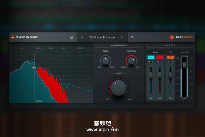 Devious Machines 的 Bass Focus 是一款先进的低频增强插件,专为混音和母带处理设计。它能让你的低音听起来更饱满、更响亮,同时保持原有的特色和身份。在小型扬声器上,Bass Focus 还能揭示原本可能会丢失的低端频率,确保你的音乐在任何地方都能发挥出色。