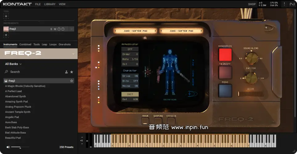 Dezert Audio 的 Freq-2 是一款专为 Native Instruments Kontakt 平台开发的高品质复古合成器音源插件,基于真实硬件采样构建,主打浓郁的复古音色和现代混音适配能力。Freq-2 由知名制作人兼音色设计师 Dez Wright 打造,他曾为多位国际艺人(如 Drake、Future、Khalid)创作音色和作品。这个插件的亮点在于其来自稀有合成器的原始采样与高度可塑的声音处理能力。