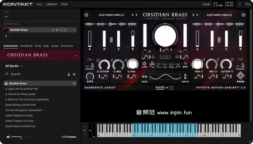 Obsidian Brass 搭载了 Emergence Audio 的第二代 Infinite Motion Engine™,该引擎允许声音在演奏过程中持续演化,创造出不断变化的音景。这使得每次演奏都具有独特性,适合构建动态的氛围和情绪。