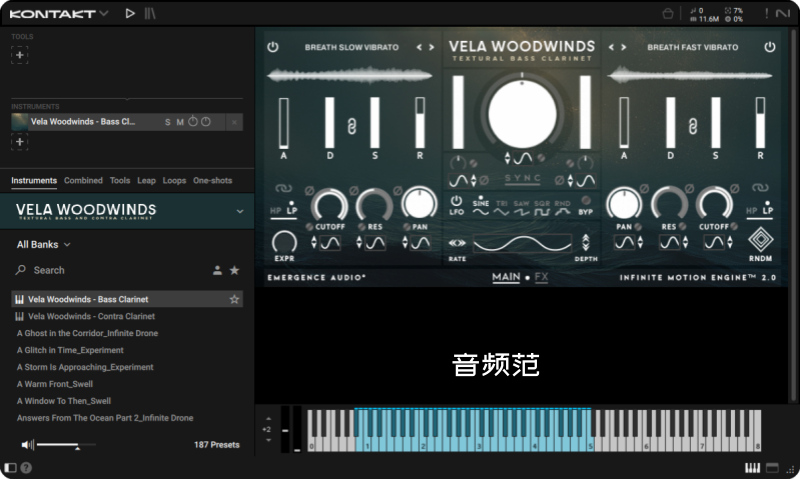 Vela Woodwinds 核心依托 Emergence Audio Infinite Motion Engine™ 2.0 与 Non-Static Sampling™ 技术: