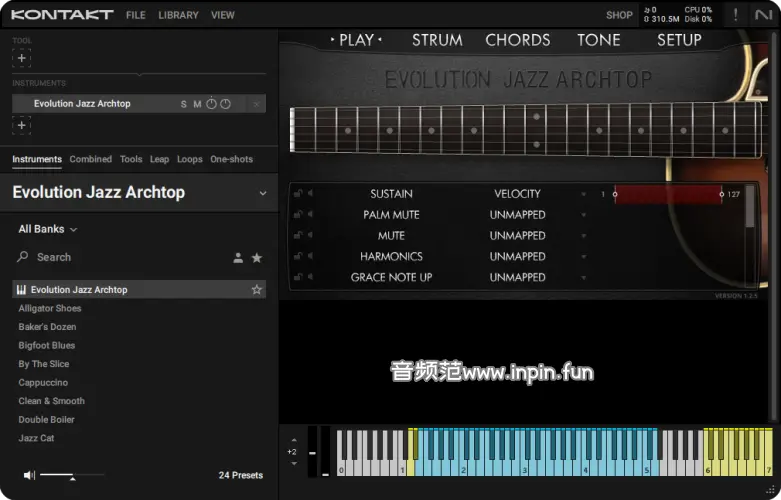 Evolution Jazz Archtop 搭载我们自主研发的 Evolution 吉他引擎,提供丰富功能,包括创新的扫弦模式编辑器、自动和弦识别系统,以及功能强大的效果器引擎。音源库内置多种工厂预设,可即刻使用,涵盖经典与现代爵士吉他音色,轻松融入混音。
