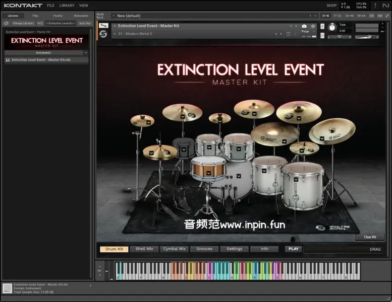 - Extinction Level Event Master Kit 专注于提供适用于重型和现代音乐风格的高品质鼓音色。其设计灵感来自于需要充满能量、侵略性和大动态范围的音乐作品,旨在帮助制作人和混音师轻松地实现这种声音效果。