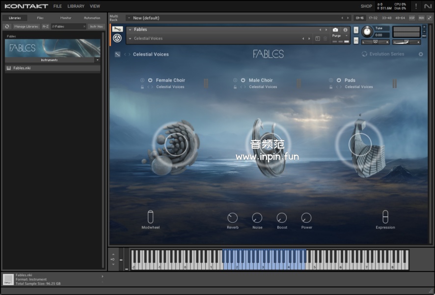 通过一系列可混合的弦乐组、男女合唱、木管乐器、调音后的打击乐器、pad、低音铜管乐、圆号合奏甚至还有水琴,探索自然有机和合成器音色之间的魔力。每个采样乐器均由技艺精湛的音乐家演奏,提供众多令人惊叹的演奏技巧和效果选项