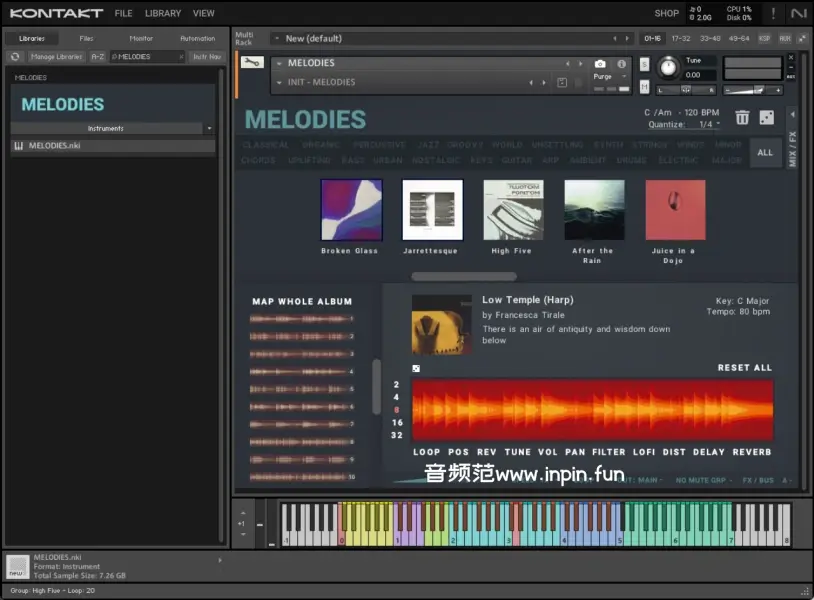 MELODIES 是一个独特的库,它鼓励实验,并为任何音乐家提供一系列新的工具来创作他/她的作品。