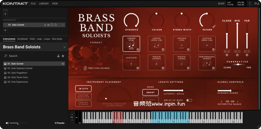 - 提供多种定位选项,例如 "In Situ"(在铜管乐队中的自然位置)、自定义位置和居中立体声,方便与其他乐器混合。