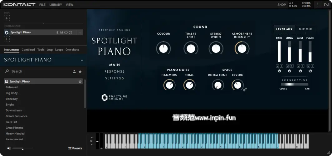 Fracture Sounds 的 Spotlight Piano 是一款基于 Steinway D 型音乐会三角钢琴采样的旗舰钢琴音色库,专为电影配乐和各种音乐风格的创作而设计。