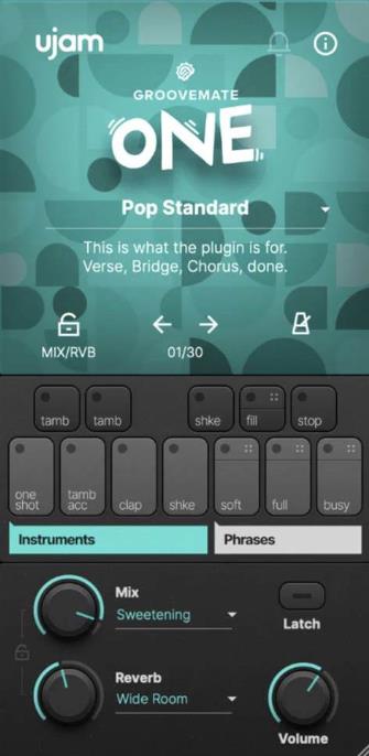 uJAM Groovemate ONE 是由 uJAM 开发的一款创新节奏音源插件,专为音乐制作人和编曲者设计,旨在为音乐作品添加现代化、富有节奏感的打击乐元素。Groovemate ONE 提供了一系列简单易用的节奏样本和 MIDI 模式,使用户能够快速创建鼓点和打击乐节奏,为音乐增添动感和层次感。
