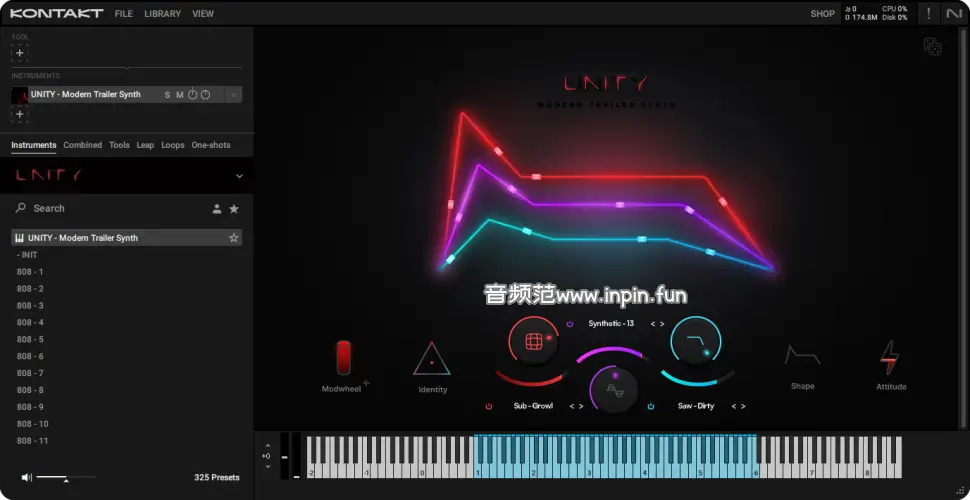 丰富的声音库: Unity包含350种独特的声音源和300个精心制作的预设,涵盖主音、贝斯、braaam、downer、riser、铜管、拨弦和脉冲等类别,满足多样化的声音设计需求。