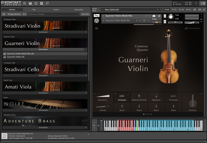 该乐器提供20种不同的专业演奏的发音,每种发音最多有五个连奏过渡。此外,创新的、性能捕获的颤音模拟了专业演奏者的自然颤音技术,立体声相位对齐动态交叉淡入淡出消除了动态过渡之间的相位。这些功能相结合,使瓜尔内里小提琴成为最逼真,最真实的独奏小提琴娱乐之一。本文档提供有关该库的信息及其所有功能的说明。