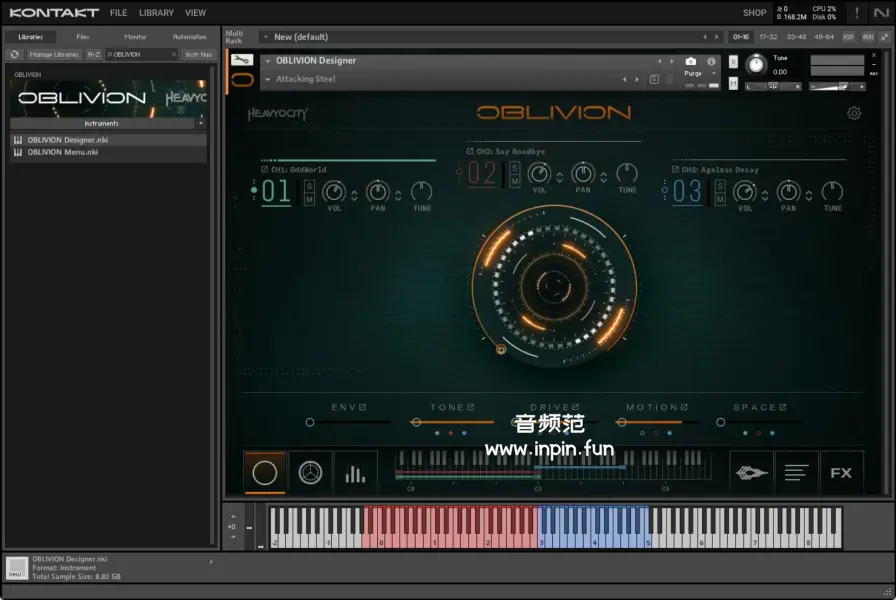 - Oblivion Aggression Designer 提供了三层独特的声音设计:冲击层、纹理层 和 低音层。每一层都可以独立控制,并可以组合在一起创建复杂而动态的音景。