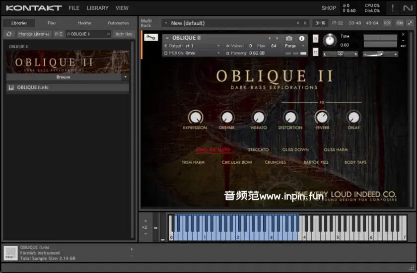 - 实验性音乐和声音设计: OBLIQUE II 为声音设计师提供了一个探索低音表现的强大工具,适用于需要非传统低音声音的创作项目,如声音装置、实验电影或艺术作品。