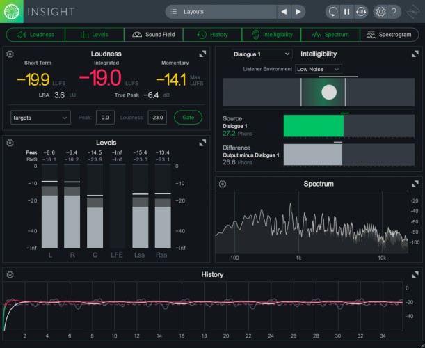 - 提供多种计量模式,包括响度,频谱,相关性,立体声图像和相位。